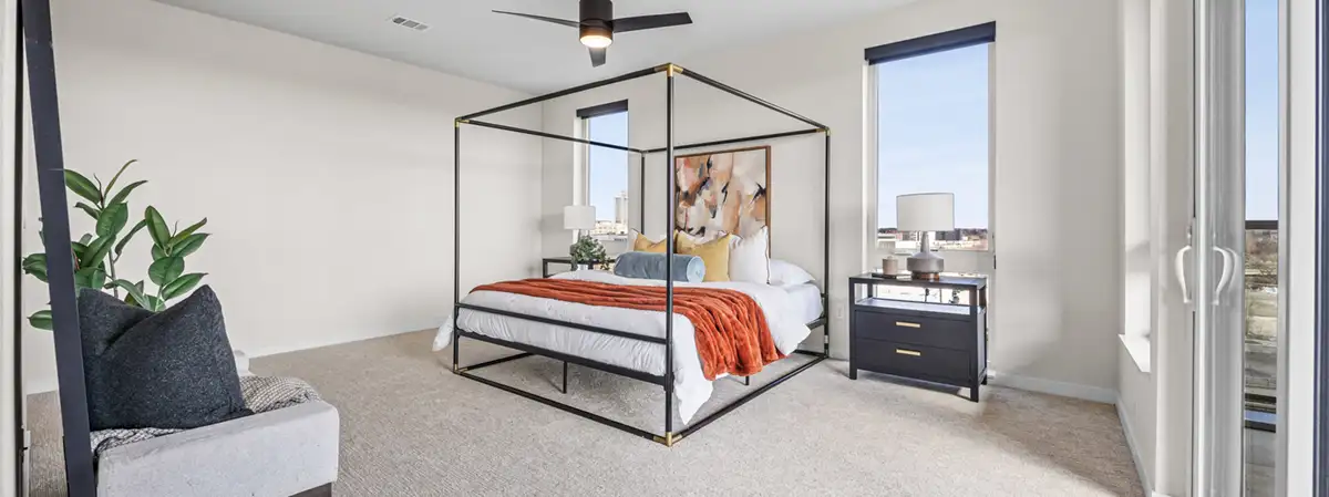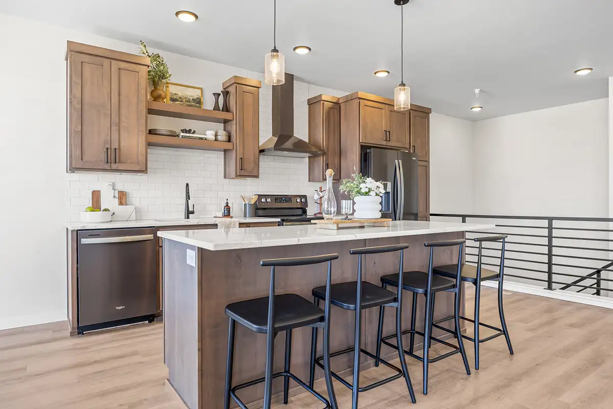 The Carrie is a spacious two-story condo offering approximately 1,460 square feet of thoughtfully designed living. With two bedrooms, three bathrooms, and a private patio, this elegant layout blends functionality with modern luxury.